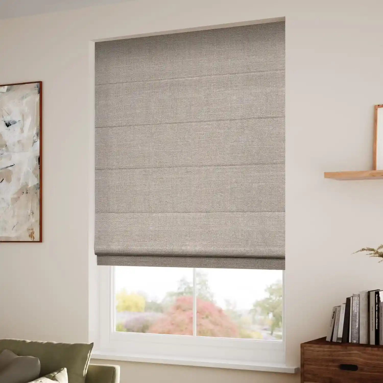 Soft, inviting and effortlessly elegant, the Electric Cavendish Warm Stone Roman Blind blends warm beige and subtle grey tones to create a beautifully versatile neutral. Perfect for adding cosiness to dark-walled living rooms or balancing light, airy bedrooms, this fabric brings both comfort and sophistication to your décor.