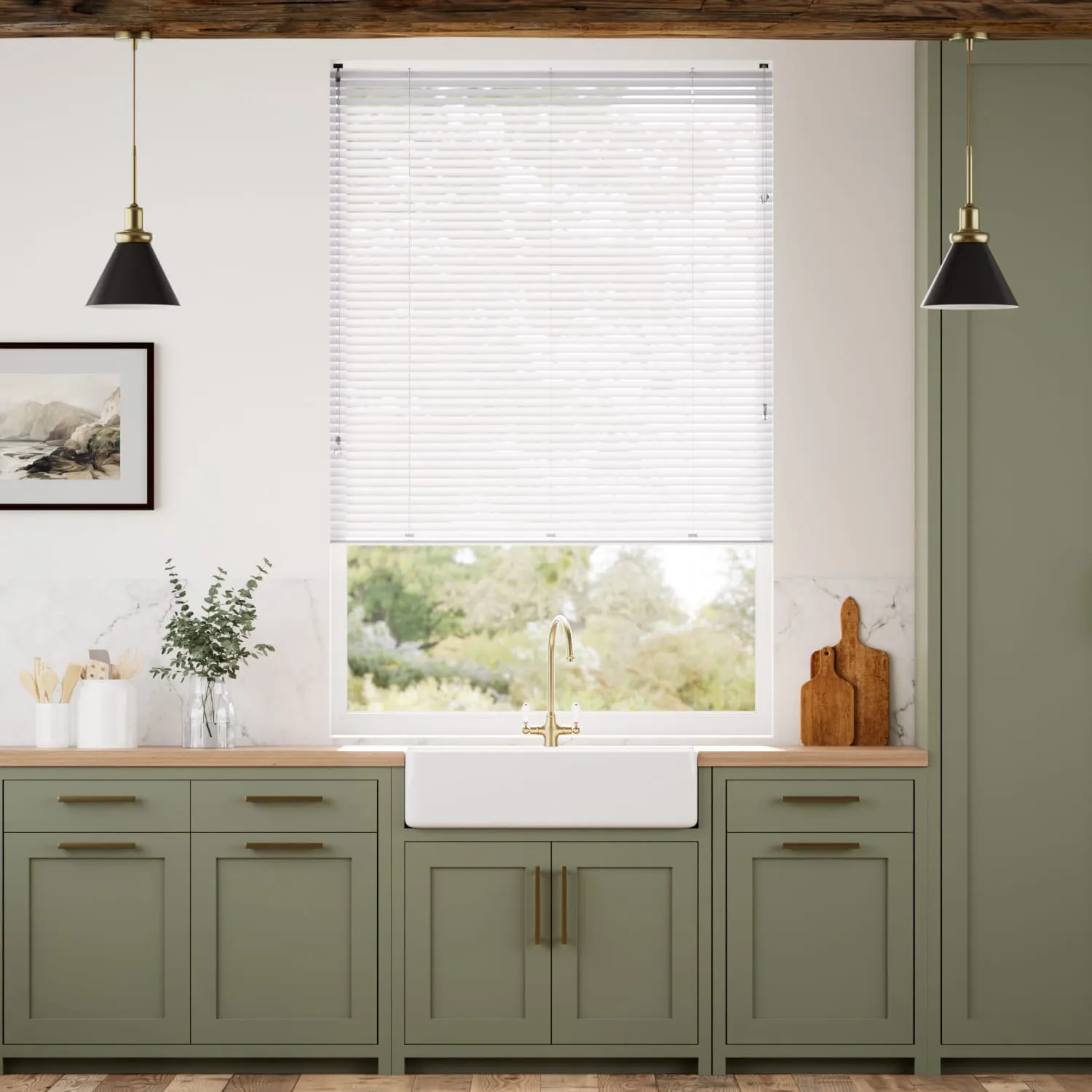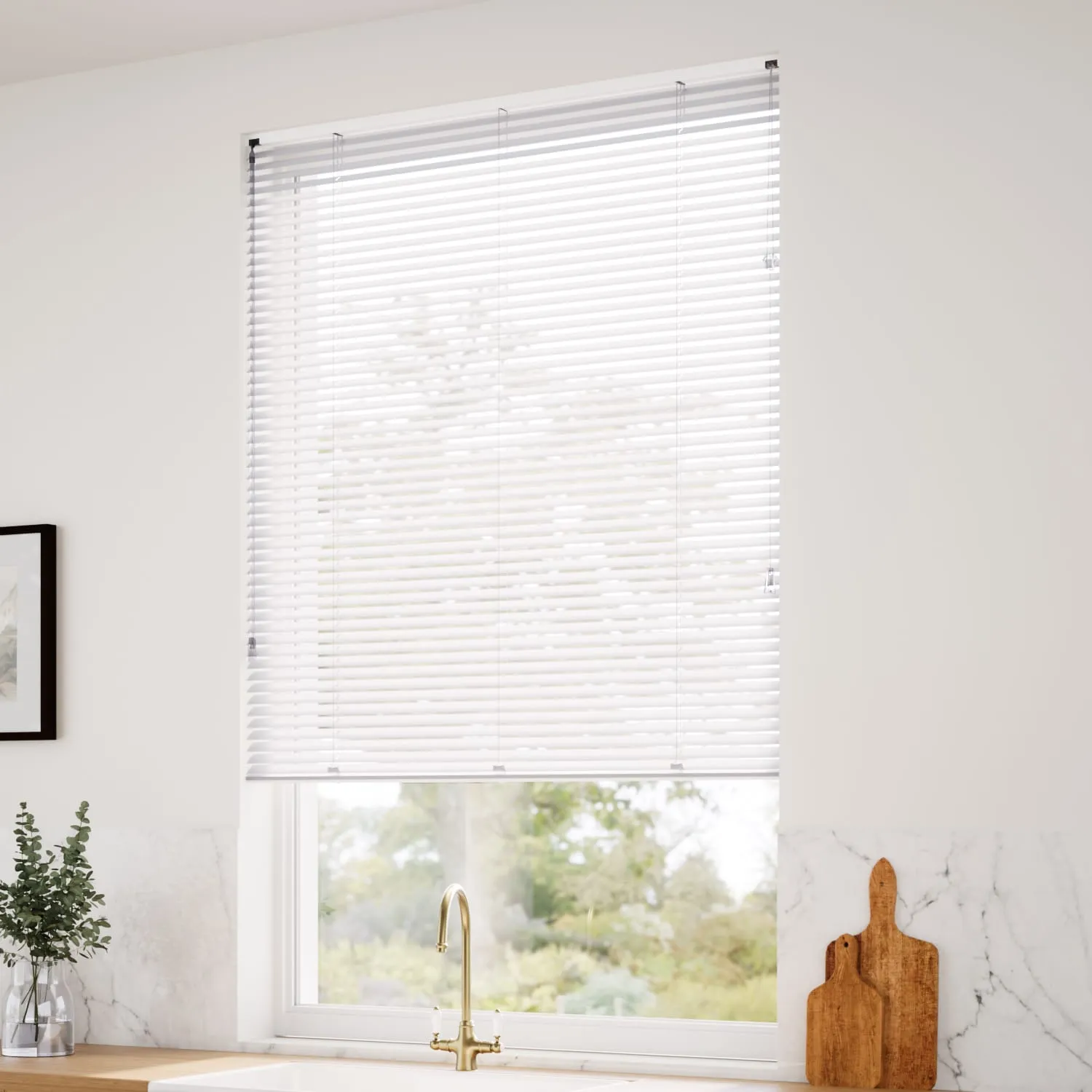 A true modern classic, the Gloss White Venetian Blind brings effortless brightness and timeless style to any room. Its crisp white finish and sleek 25mm aluminium slats create a clean, polished look that instantly elevates your décor. The subtle gloss surface reflects light beautifully, adding a fresh, airy feel—perfect for contemporary kitchens, bathrooms, or minimalist interiors.