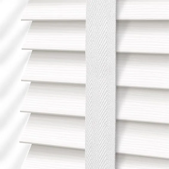 Bring bright, modern elegance to your interiors with this ice white faux wood blind. Designed to deliver excellent privacy and heat control, it combines the refined look of real timber with enhanced durability for everyday living in the UAE. The smooth 50mm slats and bold fabric tapes create a clean, architectural finish that elevates any space. Crafted to your exact measurements, this blind offers a flawless fit and effortless operation for living rooms, bedrooms, and kitchens. A practical, high-end shading solution for contemporary Dubai homes, tailored for comfort, style, and long-lasting performance.