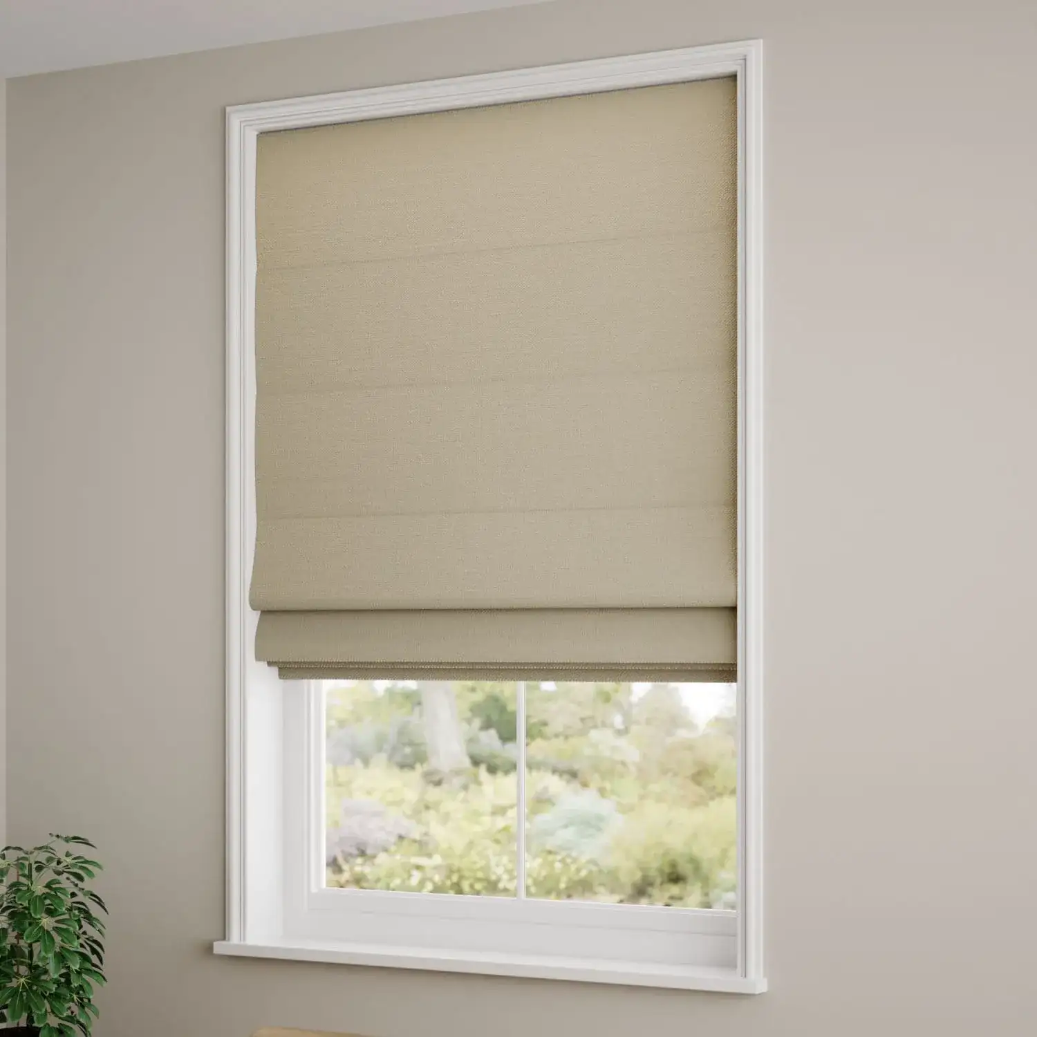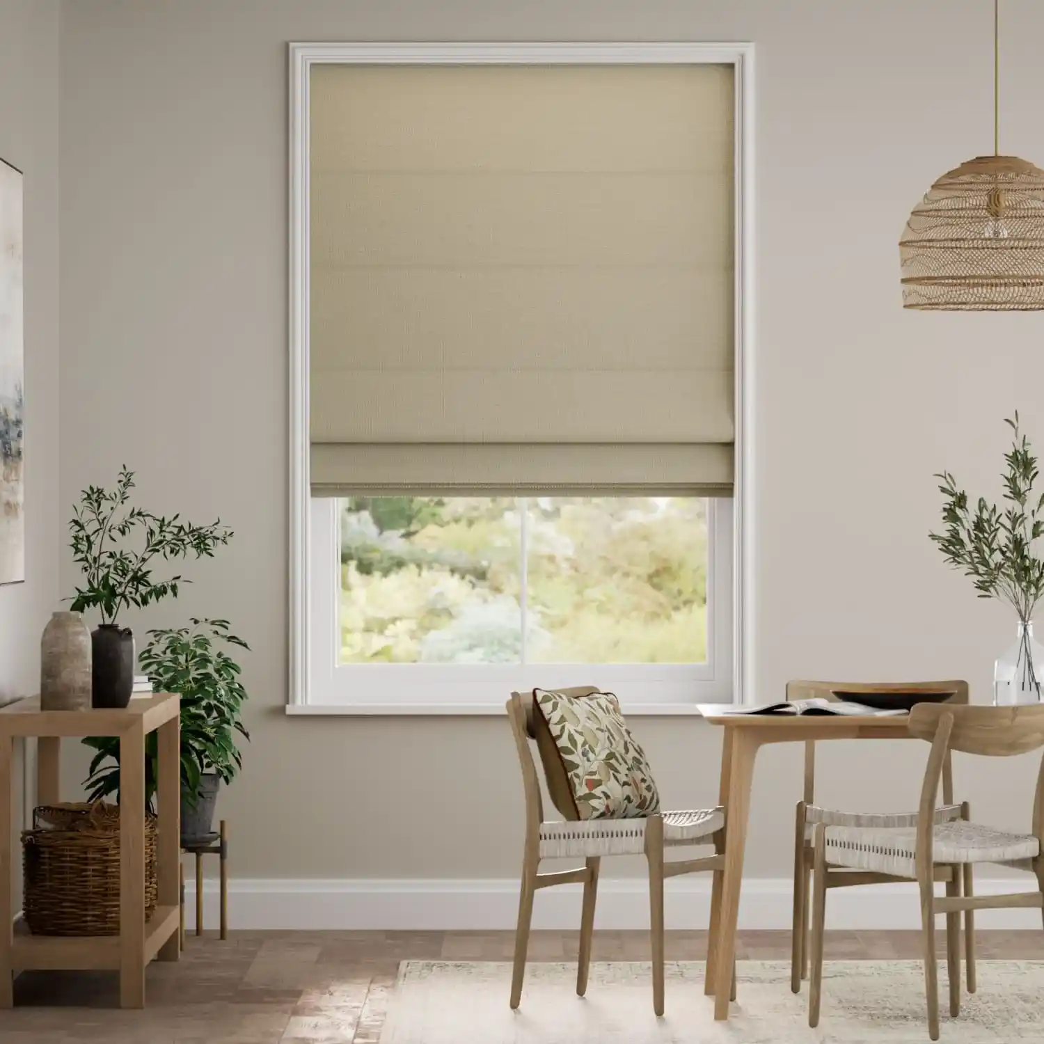 Bring calm, earthy elegance to your interior with the Marcella Warm Stone Roman Blind. Inspired by the rustic beauty of classic linen, this fabric features a beautifully slubby woven texture that blends relaxed luxury with timeless sophistication. Its warm stone tone softens natural light, creating a cosy and inviting atmosphere that feels perfectly suited to modern UAE homes.