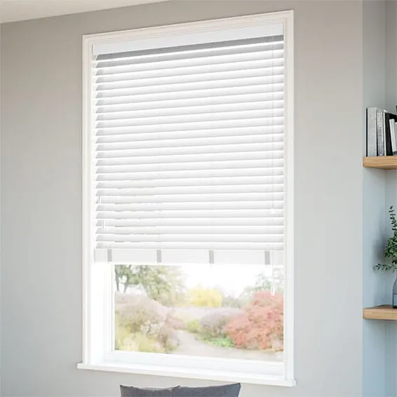 Timeless in appearance and built for everyday comfort, this white faux wood blind brings a clean, refined look to Dubai homes. The smooth bright finish reflects light beautifully while offering excellent privacy and reliable heat control. Crafted from waterproof, warp-resistant materials, it’s ideal for humid spaces such as bathrooms and kitchens. Precision made to measure, each blind fits perfectly and operates effortlessly, with the option to upgrade to discreet motorised tilt for added convenience. A stylish, durable solution designed to complement modern interiors and support comfortable living across the UAE.