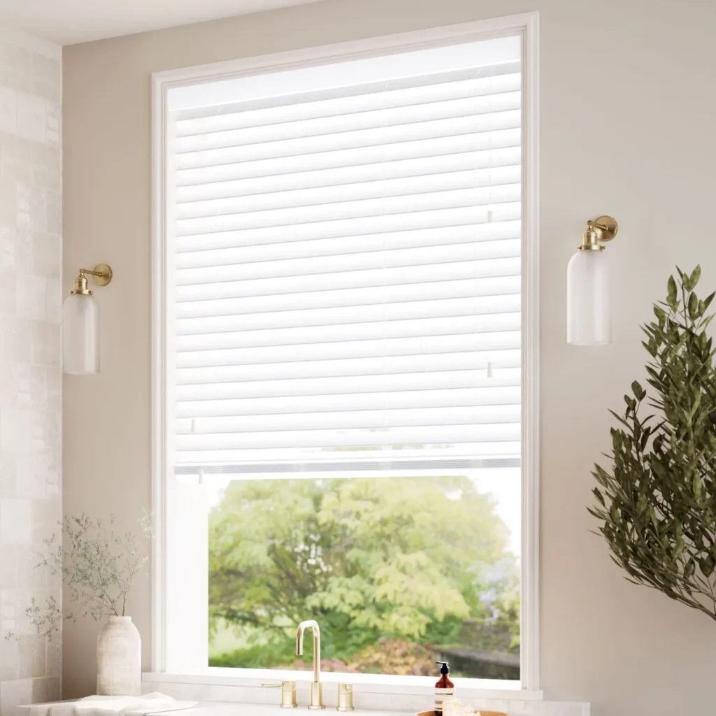 We have the perfect moisture-safe solution in wood blinds for your kitchen and bathroom windows. The construction from the high-grade PVC with wood-look finish will resist warping and humidity.